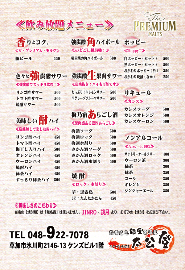 釣宿直送 個室居酒屋 太公登 たいこうのぼる 埼玉県草加市氷川町2146-13-1階 TEL048-922-7078